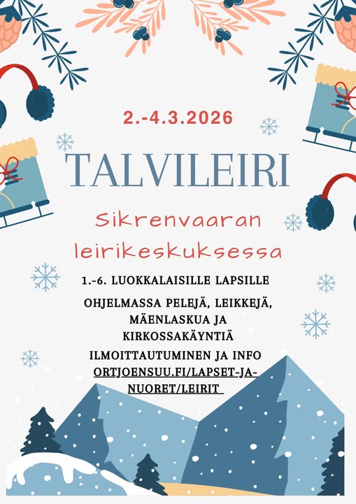 Perinteinen Sikrenvaaran talviloman lastenleiri 1.-6. -luokkalaisille järjestetään 2.-4.3.2026.