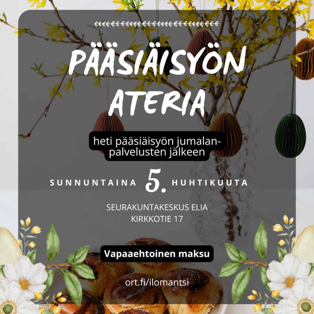 Tervetuloa pääsiäisyön jumalanpalvelusten jälkeen nauttimaan yhteinen juhla-ateria Seurakuntakeskus Eliaan!💛😍