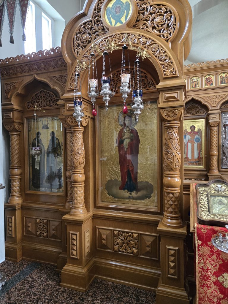 Kristuksen kirkastumisen kirkossa on kaksi erityisen arvostettua ikonia, Konevitsan ja Valamon Jumalanäidin ikonit.