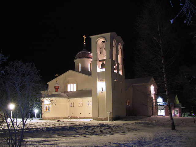 Arkkitehti Ivan Nikolajevitš Kudrjavtsevin (1904–1995) suunnittelema Valamon luostarin kirkko valmistui vuonna 1977.