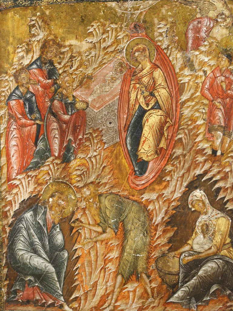 ”Nähdessään kaikkea luotua kirkkaamman tähden rikollinen Herodes pelästyi ja tempaisi maitoa imevät pienokaiset äitinsä sylistä. Ottaen Johanneksen Elisabet pyysi kalliota: Ota vastaan äiti lapsineen. Vuori otti Edelläkävijän vastaan, seimi varjeli aarretta, josta tähti oli kertonut, ja tietäjät kumarsivat. Herra, kunnia olkoon Sinulle” (ehtoopalveluksen avuksihuutostikiiroiden doksastikon 8. sävelmä).