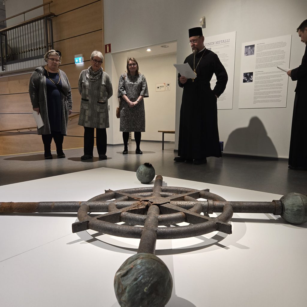 Jyväskylässä tarkastuksen ohjelmassa oli myös tutustuminen ”Ikuinen metalli – Metallitaidetta Suomen kirkoista ja hautausmailta” -näyttelyyn Suomen käsityön museossa.