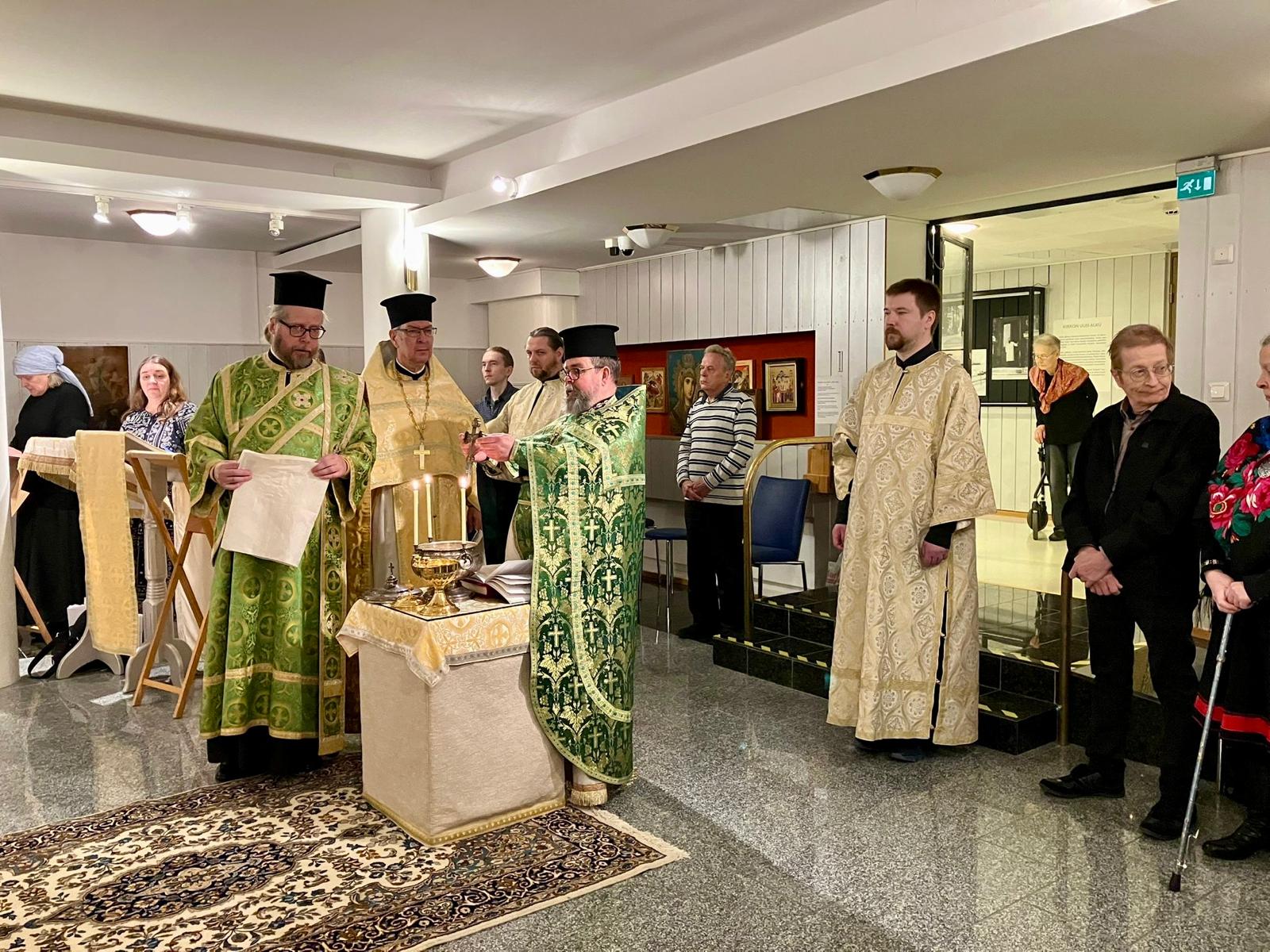 Korkeasti pyhitetyt Helsingin ja koko Suomen arkkipiispa Elia, Kuopion ja Karjalan metropoliitta Arseni sekä korkeasti siunattu Oulun metropoliitan tehtäviä hoitava Haminan piispa Sergei toimittivat yhdessä