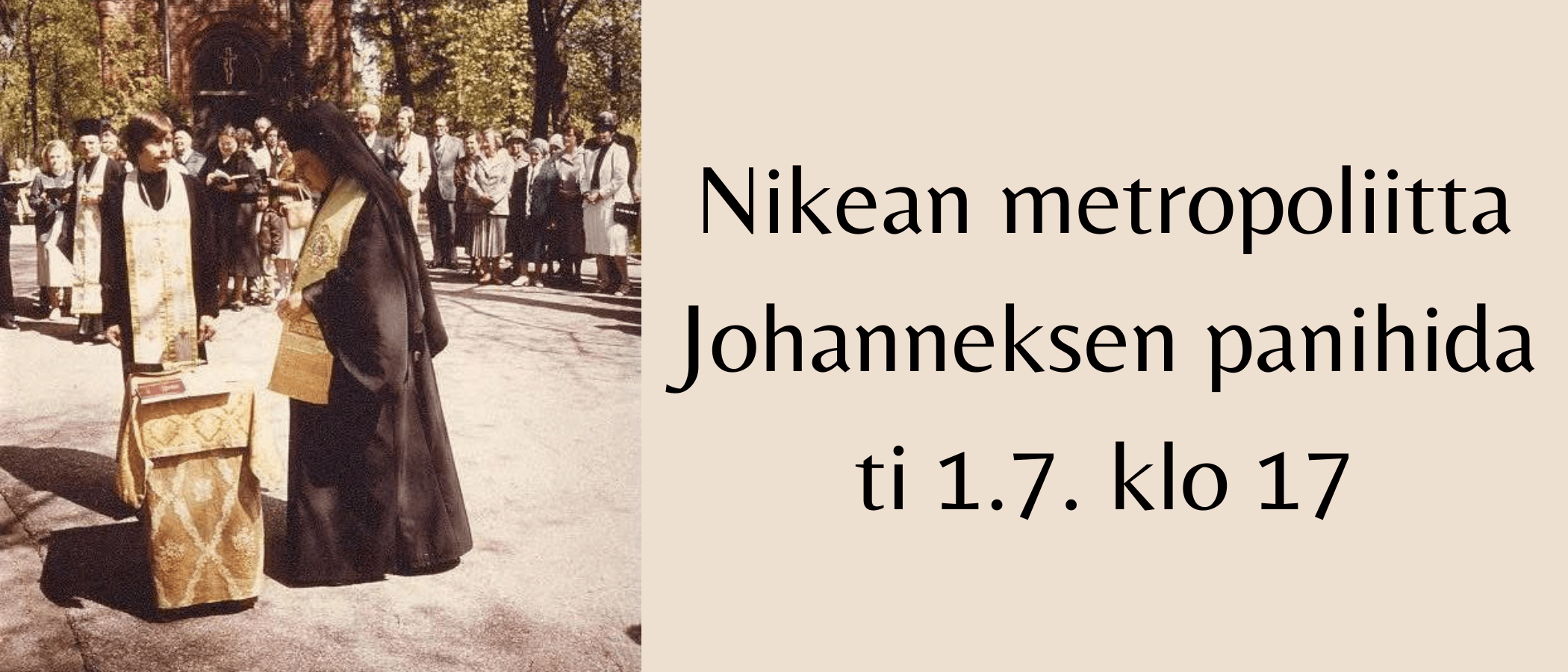 Tänä vuonna tulee kuluneeksi 15 vuotta Nikean metropoliitta Johanneksen kuolemasta. Panihida toimitetaan hänen haudallaan ti 1.7. klo 17.